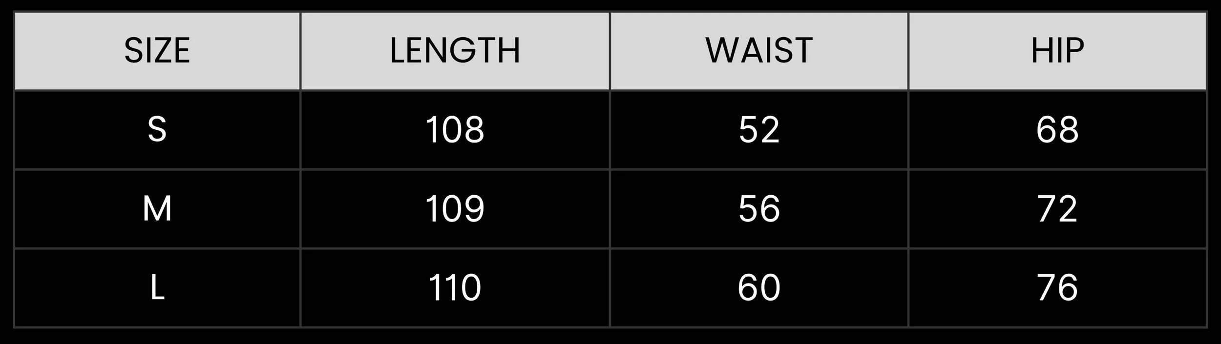 SIZE GUIDE IN CM